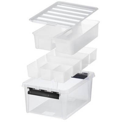 Műanyag tárolódoboz, fekete fogantyúkkal, 7 rekeszes, SMARTSTORE "Classic 15", átlátszó