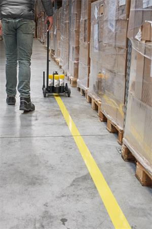 -jelölő spray területek kijelölésére és a forgalmi utak optimalizálására gyárakban, raktárakban, termelési létesítményekben és parkolókban stb.