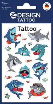 Matrica, tetoválás, 1 ív, 76x120 mm, AVERY ZWECKFORM, "Z-Design No.56770", cápák